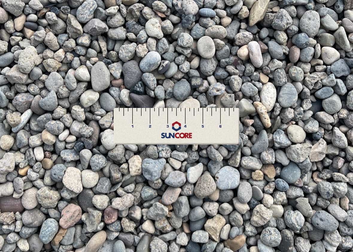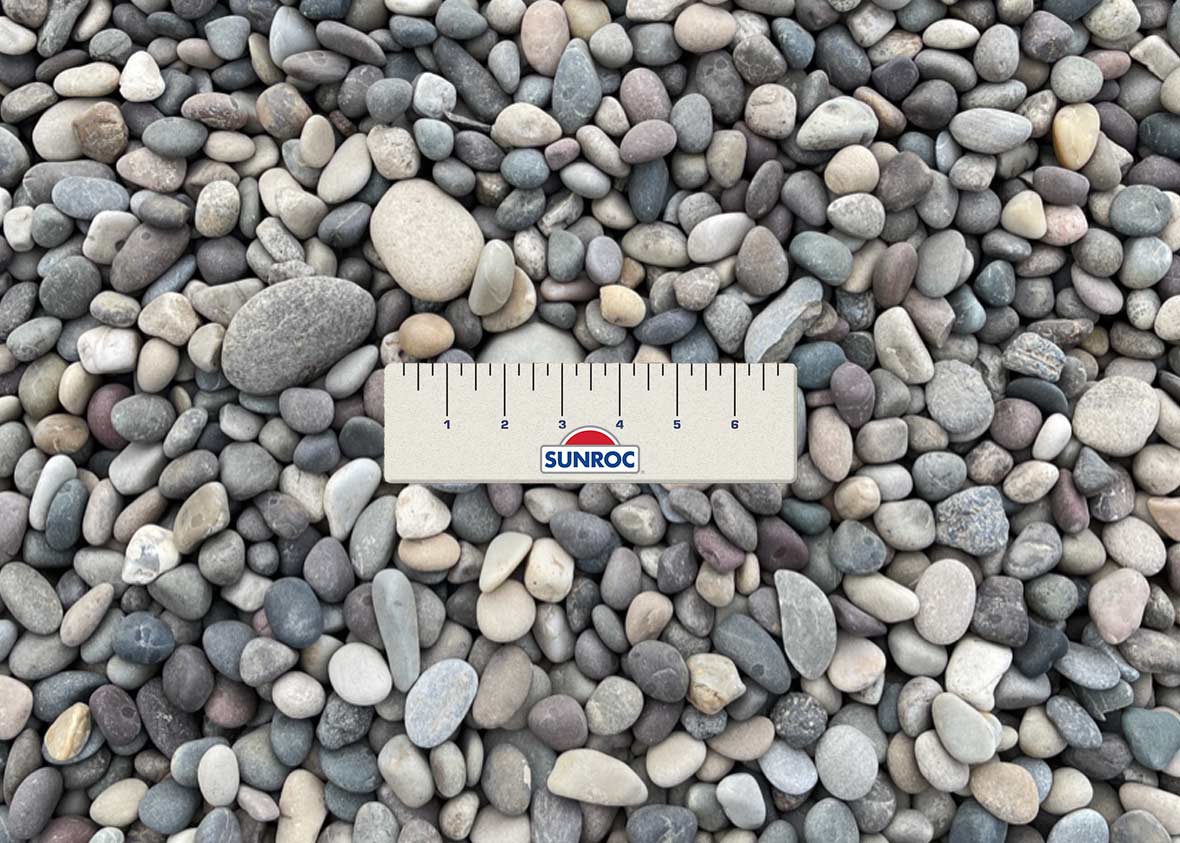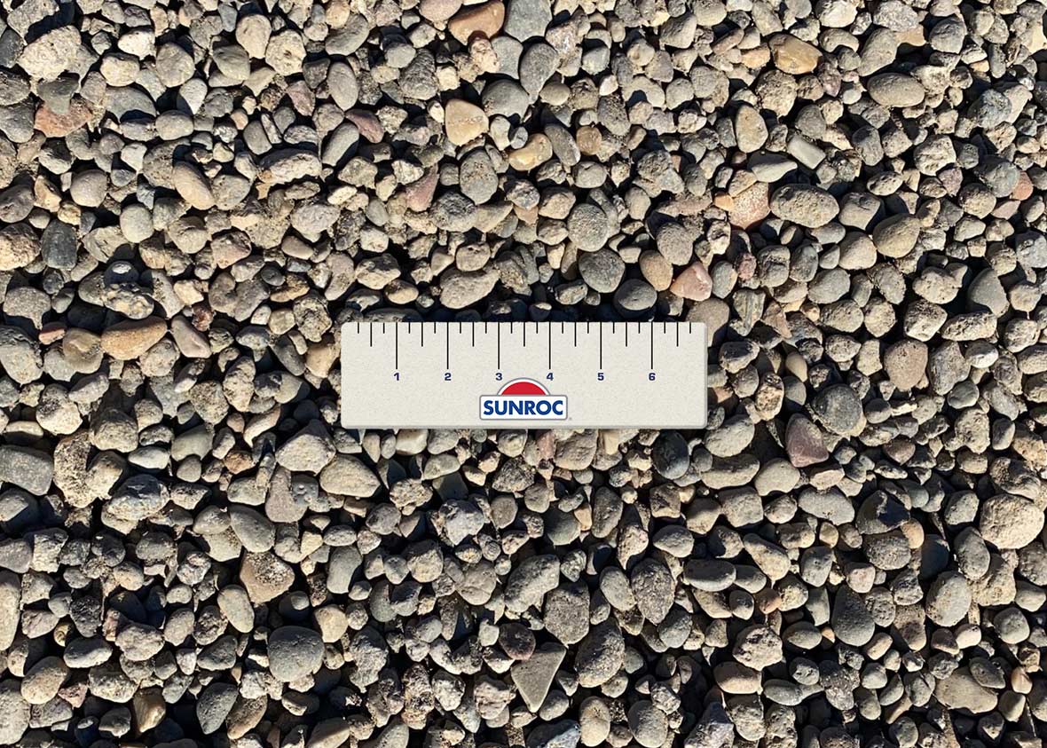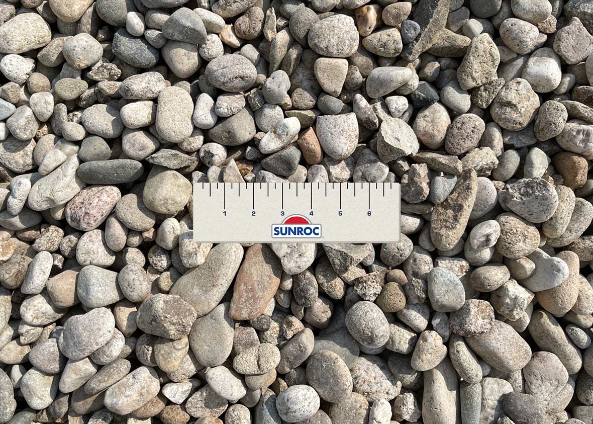 ¾” maximum screened round rock is commonly used for drainage, backfill, pipe bedding, landscaping and erosion control.