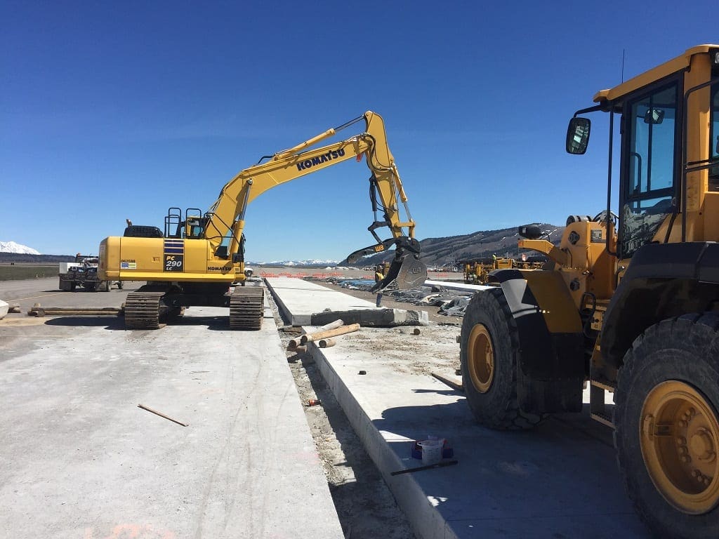 Work includes the removal of existing pavement, Portland Cement concrete paving (13-inch) 9,500 SY, Portland Cement concrete paving (8-inch) 6,000 SY, bituminous paving 1,200 TN, aggregate base course 3,000 CY, unclassified excavation 7,800 CY, storm drain pipe installation (RCP & Ductile Iron) 2,700 LF, 12-inch modular trench drain 340 LF, a modular subsurface stormwater retention system and airfield lighting and pavement marking improvements.