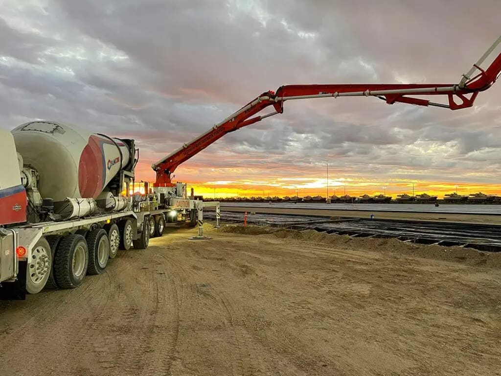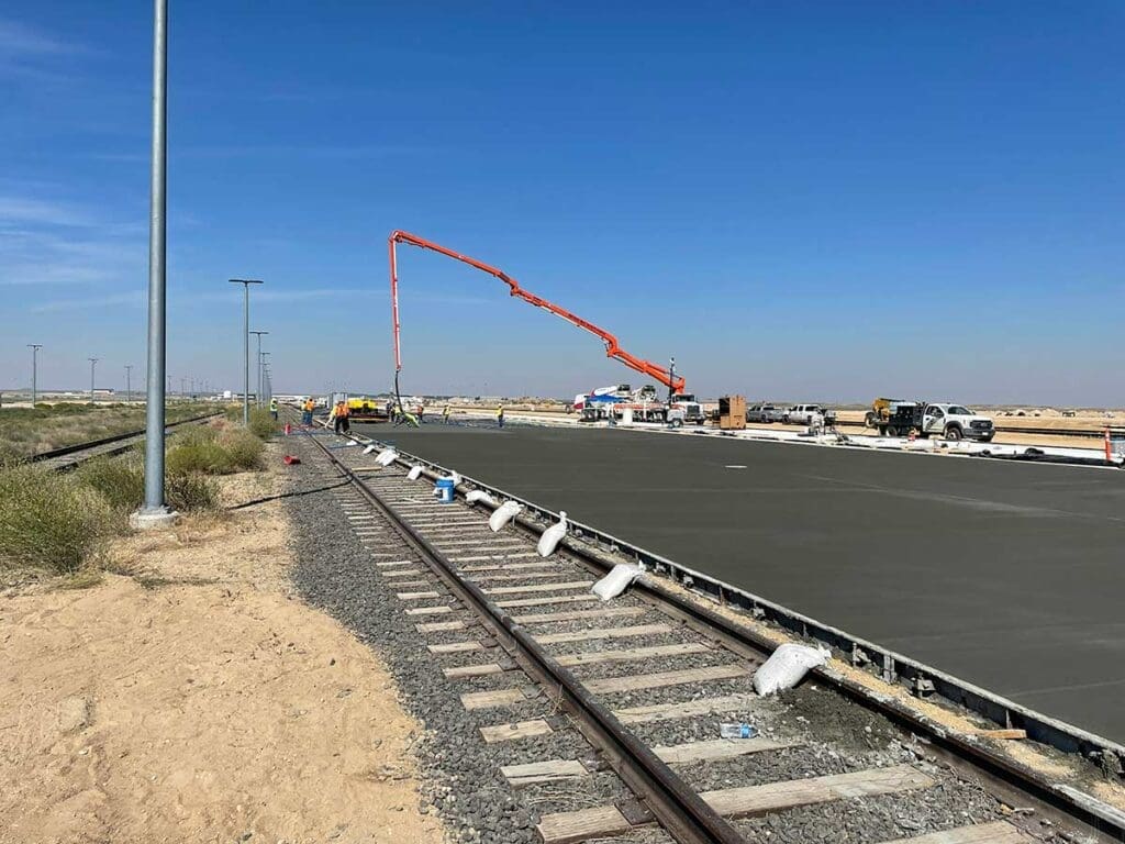 Working with IMCO Construction, Sunroc was able to set up a portable ready-mix batch plant to provide ready mix concrete for the Idaho Army National Guard’s (MATES) Maneuver Area Training Equipment Site for a rail extension project. Approximately 25,000 cubic yards were delivered for the construction of a new railroad expansion. This project used a portable ready mix facility that was set up and successfully achieved by cross-company silos working together.