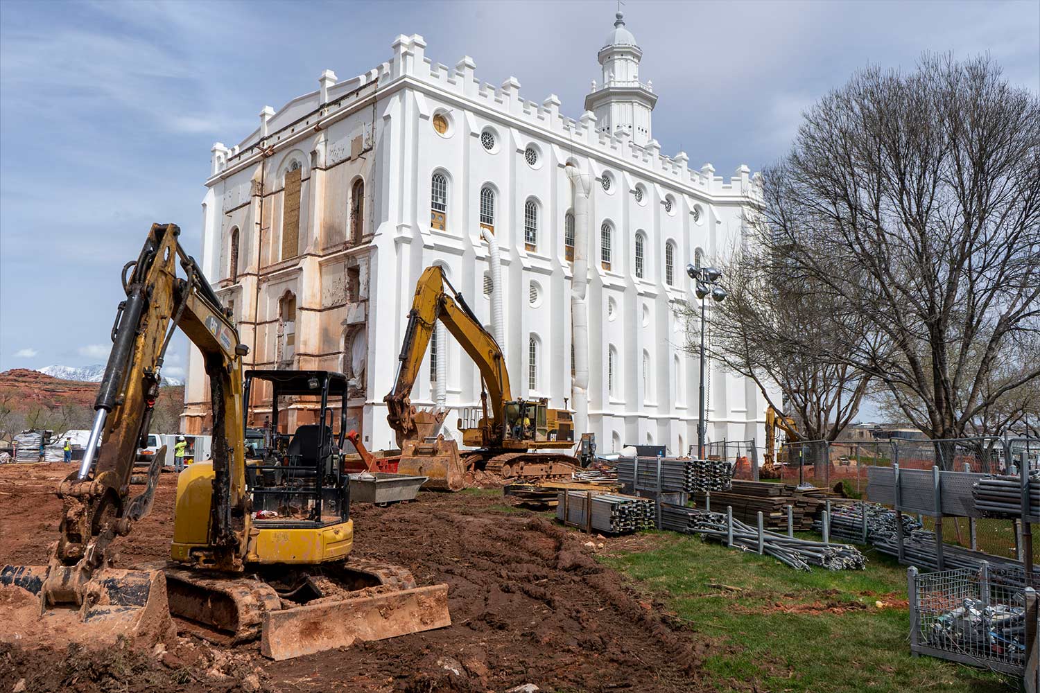 The St. George Temple renovation project is an extensive undertaking for Sunroc, in conjunction under Westland Construction for The Church of Jesus Christ of Latter-day Saints. The western wing and northern annex that served as the primary entrance will be demolished in preparation for a new “north addition.” This new addition will be built around a steel framework with the outer walls created from precast, reinforced concrete, which Sunroc will supply.
